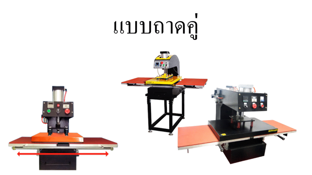 แบบนี้ใช้งานง่ายขึ้น และ งานออกได้ไวขึ้น เพราะมี สอง ถาด สามารถใส่เสื้อรอระหว่างที่อีกตัวกำลังโดนฮีตอยู่ แบบนี้จะใช้รวมกับเครื่องปั้มลม ราคาก็จะสูงกว่า 2 แบบแรก แน่นอนครับ เรียกได้ว่า เจ็บแต่จบ