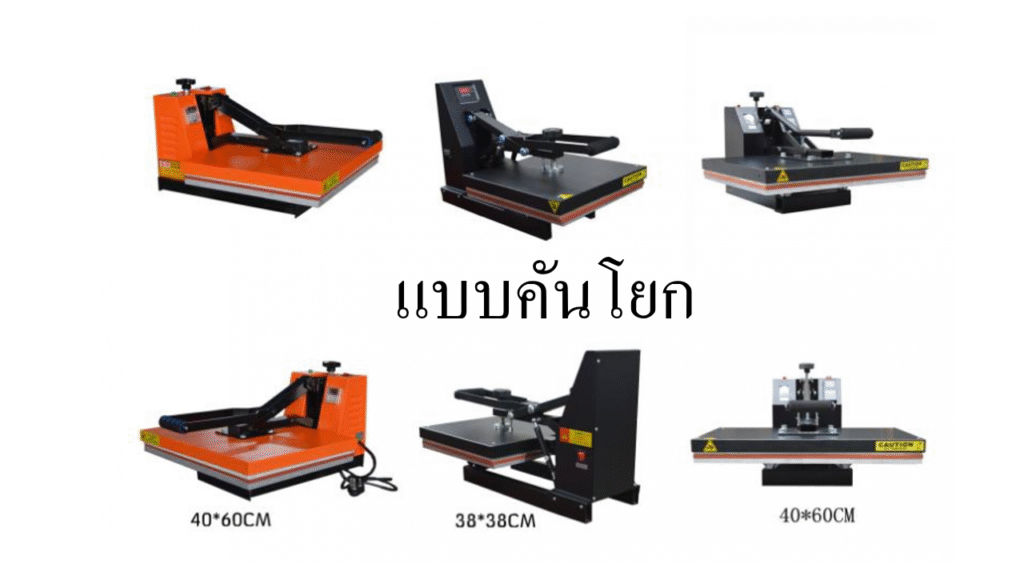เครื่องรีดร้อนแบบคันโยก ก็คือ โยกขึ้นลงนั้นเอง มักจะมีสองขนาด เหมาะกับงานพิมพ์ขนาด A4 และ A3 ครับ