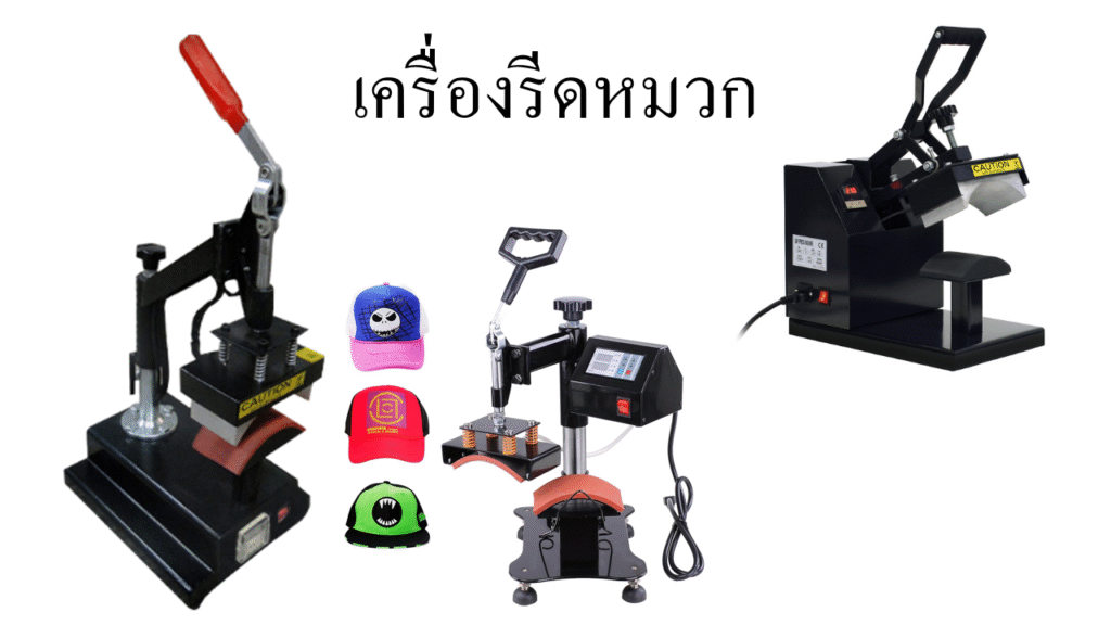 เป็นเครื่องรีดบนหน้าหมวก มีโมลโค้งๆรองรับความโค้งของหน้าหมวก มีหลายรุ่นเช่นกันครับ