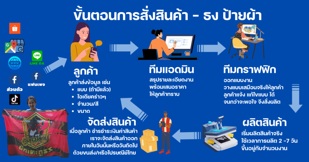- เริ่มผลิต – แพ็คงาน – จัดส่งถึง ลูกค้า ตามระยะเวลาที่กำหนด
