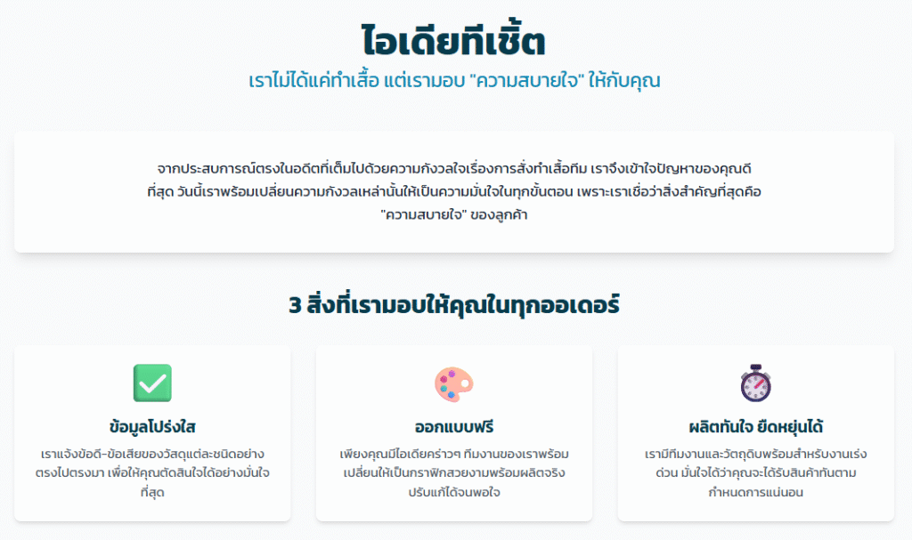 บ่อยๆครั้งที่ผมได้รับมอบหมายจากเพื่อนให้เป็นคนรับผิดชอบเรื่องจัดหาเสื้อทีมในการจัดกิจกรรมต่างๆสมัยเรียนมหาวิทยาลัย มีหลายอย่างที่ผมกังวลใจมากในขณะนั้น เช่น คุณภาพสินค้า คุณภาพงานสกรีน ช่วงเวลาผลิตจะใช้ทันวันงานไหม ผมจะโดนด่าหรือเปล่าถ้างานที่สั่งมาผิดพลาด เหล่านี้คือสิ่งที่ผมกังวลใจ และ มาทราบภายหลังว่า มันคือ สิ่งที่ทุกคนกังวลใจ เช่นกัน