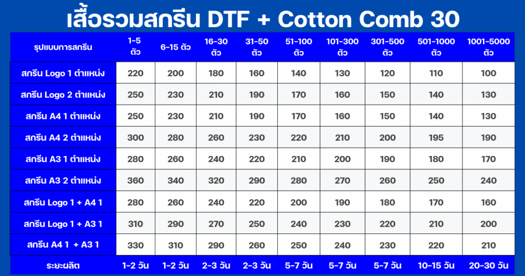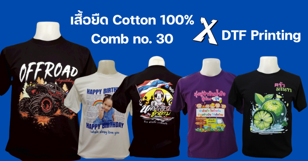 เสื้อยืดผ้า Cotton 100% Comb No.30 + งานสกรีน DTF (Digital Printing)