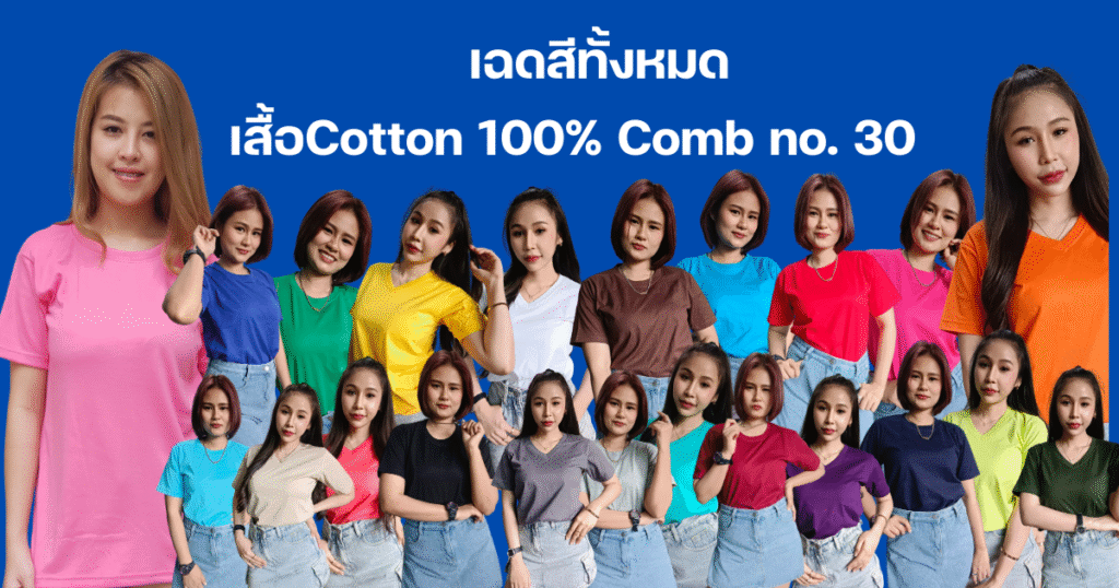 เลือกเนื้อผ้า Combed 30 จากร้านเราไม่ผิดหวังแน่นอน เพราะเราได้คัดเลือกเส้นด้าย เลือกโรงทอ และ โรงย้อม อยู่นานนับปีกว่าจะได้ข้อสรุปที่ดีที่สุด