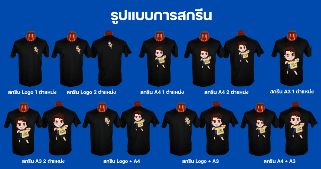ลูกค้าที่ต้องการสั่งทำเสื้อพร้อมสกรีน เป็นตำแหน่งต่างๆ ด้านหน้า-หลัง-แขน