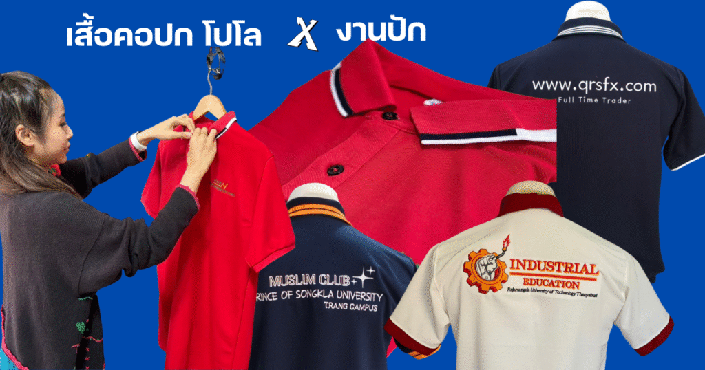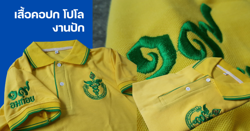 ” งานปักเสื้อโปโล คืออะไร? คือการใช้ด้ายสีต่าง ๆ เย็บลวดลาย โลโก้ หรือตัวอักษร ลงบนเนื้อผ้าเสื้อโปโล/ผ้ายืด ด้วยเครื่องจักรปักอัตโนมัติ ทำให้ลายติดทนนาน ไม่หลุดลอกง่าย”